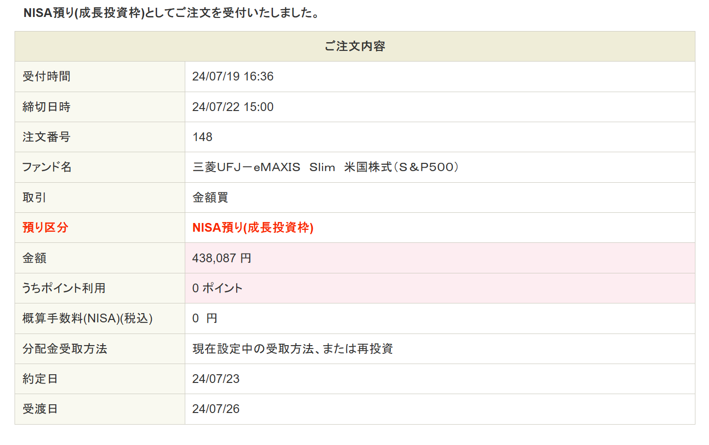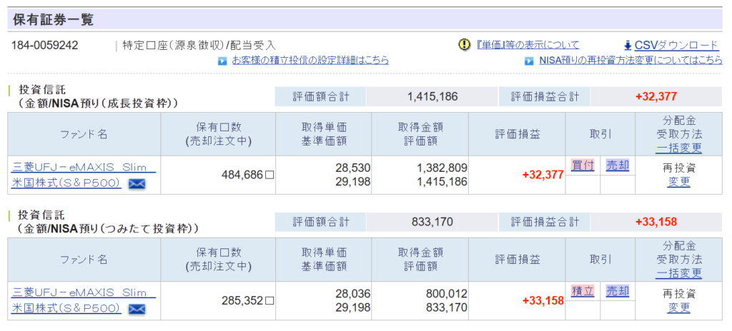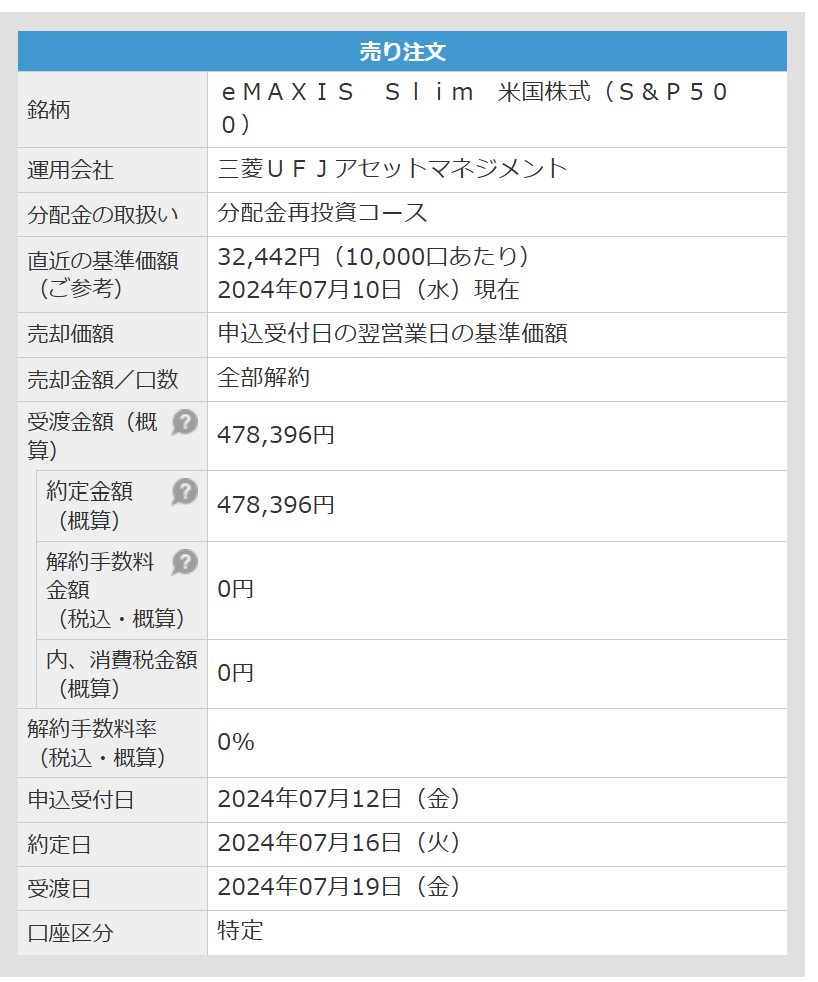 ※7月、特定口座で運用していたSP500インデックス(47万円分)を売却し、NISA成長投資枠で買い直しました。