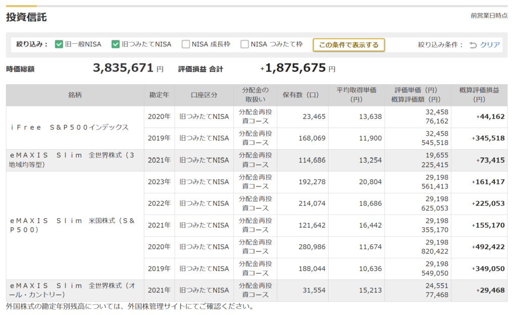 旧つみたてNISA運用成績