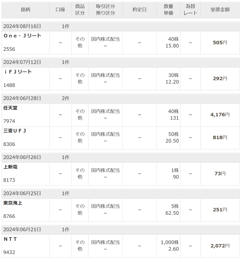 個別株・配当金(2024.5/1~8/31)